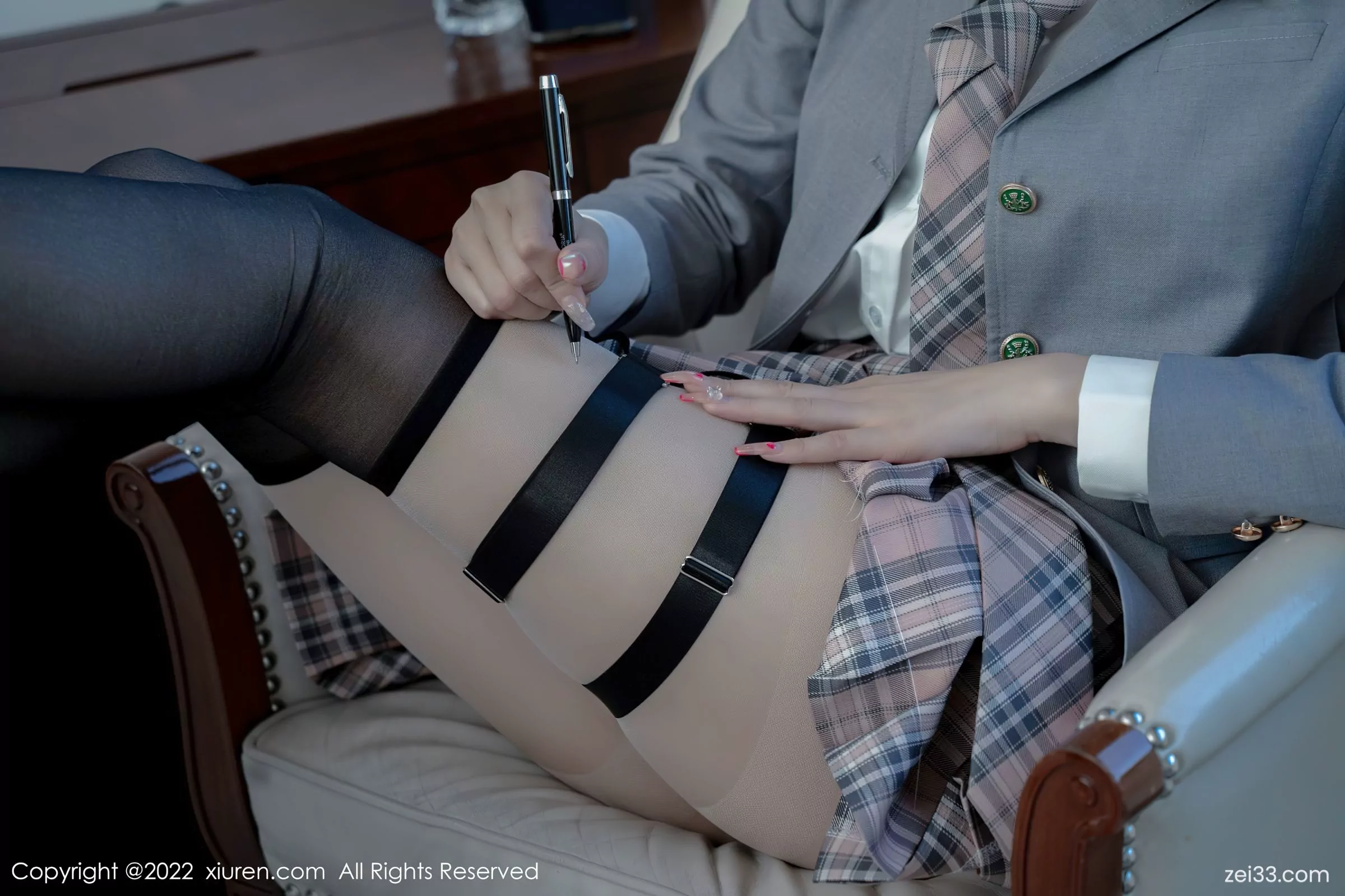 [XiuRen秀人网] No.4845 文芮jeninfer কালো সিল্কের সাথে প্লেড স্কার্ট সাদা টি