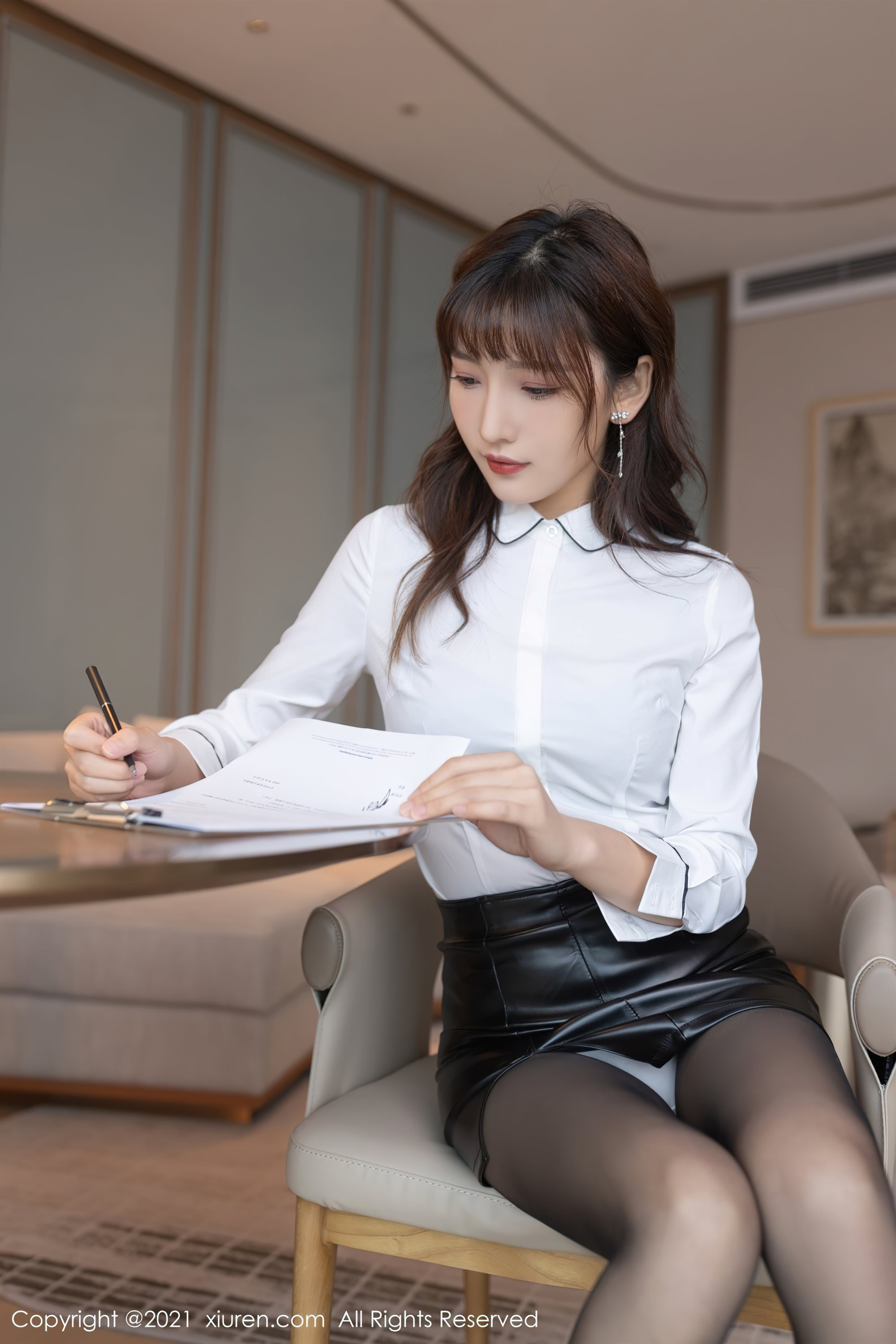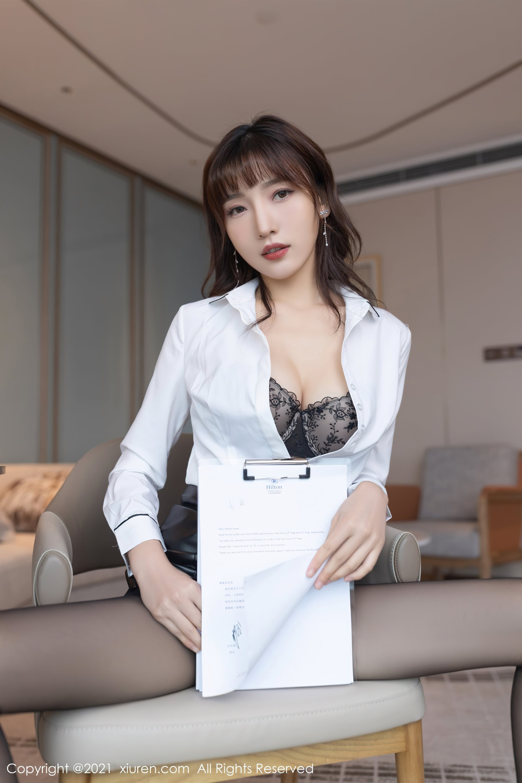 [XiuRen] No.4068 মডেল Lu Xuanxuan Chongqing ভ্রমণ ছবির সাদা কর্মক্ষেত্র OL থিম প্রাইভেট রুম খোলা ফাইল কালো pantyhose প্রলোভন ছবি